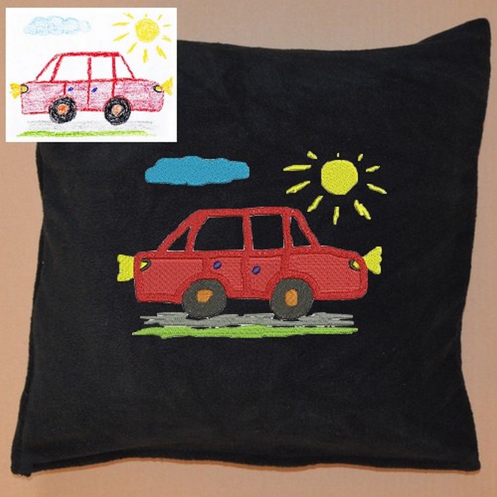Máte doma stohy pokreslených papírů a je vám líto je jen tak založit do šuplíku? Proměníme první „čmáranice“, postavičky i sluníčka vašich dětí v originální výšivku na tričko, mikinu nebo plátěnou tašku.